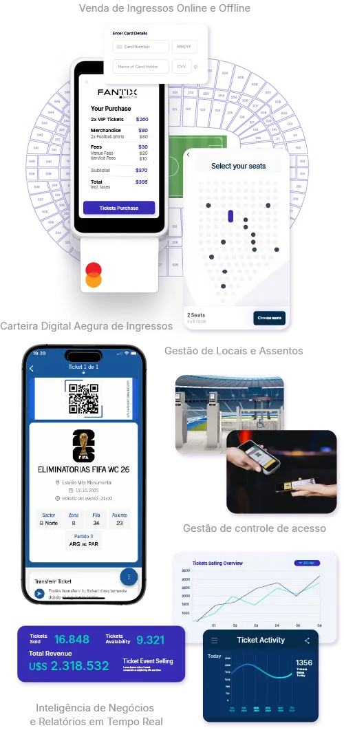 Nossa tecnologia integrada e aberta em nuvem permite que os organizadores de eventos entendam e se envolvam melhor com seu público, maximizem sua receita, garantam suas operações e elevem a experiência de seu público ao próximo nível.